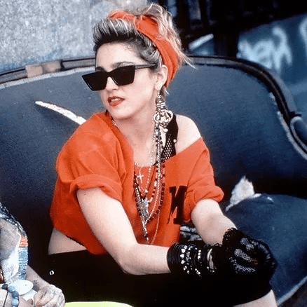 Les accessoires, Madonna les a adoptés comme si sa vie en dépendait! Boucles d’oreilles pendantes, bracelets empilés presque jusqu’au coude, mitaines trouées, pendentifs énormes, casquettes feutrées bourrées de pins. Parfois, elle portait plus d’accessoires que de tissus. Et ça nous a bien inspirés, nous, les jeunes filles de cette époque.