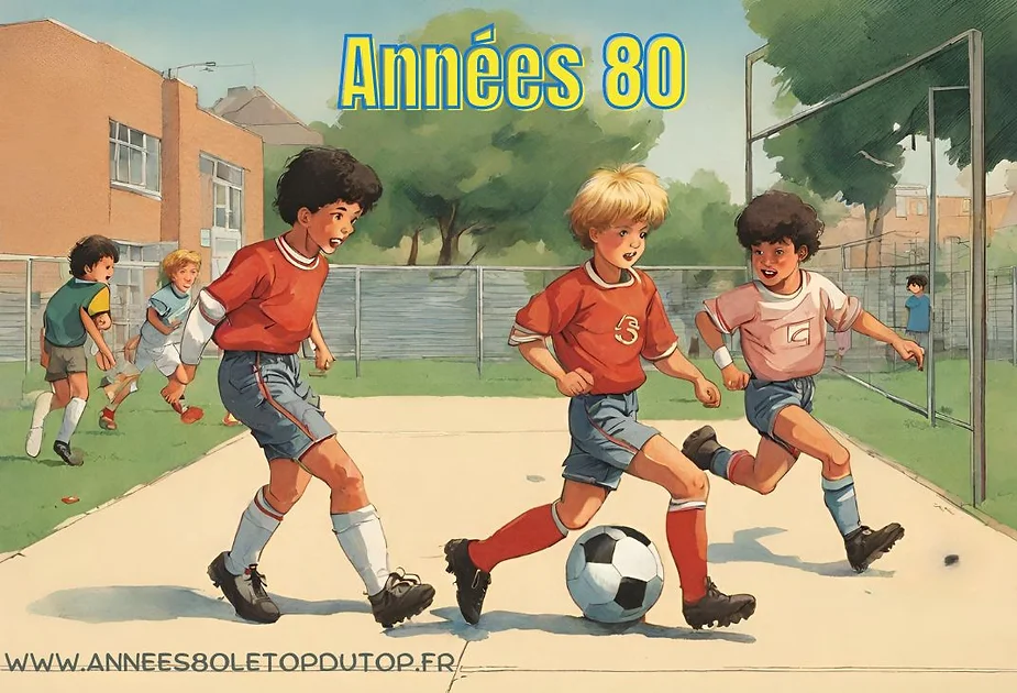 Pas une récréation sans match de foot, dans les années 80. C’était l’activité incontournable et intemporelle de tout garçon. Il suffisait de poser sa veste ou son cartable pour délimiter les cages de but et en avant ! Les filles n’étaient pas bienvenues, et les contacts étaient plutôt brutaux, mais on se serrait la main en fin de match, bons joueurs.