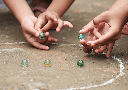 Plus calmes mais tout aussi passionnants, les jeux de billes occupaient les garçons et développaient leur esprit de compétition. C’est qu’il fallait être stratégique pour arriver à garder ses billes, et, si possible, à en gagner, en dépossédant les copains. Au risque, parfois, de se voir assommé d’un boulard perdu par son adversaire malchanceux.